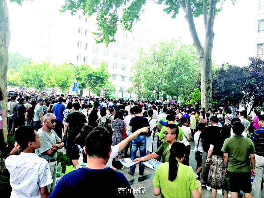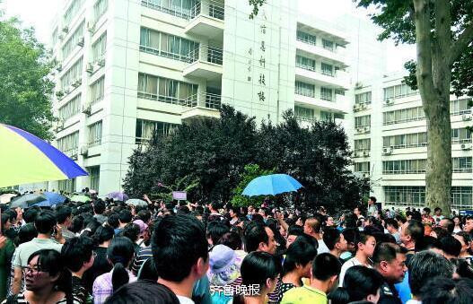 7月10日上午山大中心校区聚集大批小学生家长,都是陪孩子参加小升初招生考查、面试的