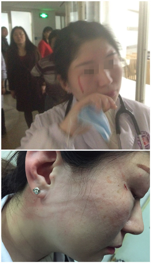 说完欲起身赶去急诊科会诊,钟某洁突然动手,从背后袭击杨医生,导致其右脸多处抓伤,鲜血直流,眼镜被摔断。