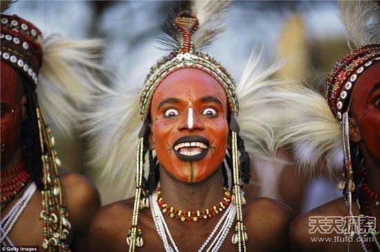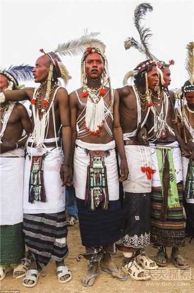 格莱沃尔节会在每年雨季刚刚结束的9月如期上演、持续7天7夜,它是西非游牧民族——沃达贝部落最重要的节日,主旨在于庆祝和感恩上苍对西非平原短暂绿色、肥沃雨季的给予。对于参赛的男人们来说,6个小时的装扮时间虽然不短,但他们在得到了围观女人的暧昧眼神以及得到专家评委的肯定时,就知道一切都是值得的!最重要的是,这个比赛很可能为他们偷得美人归赢得机会。