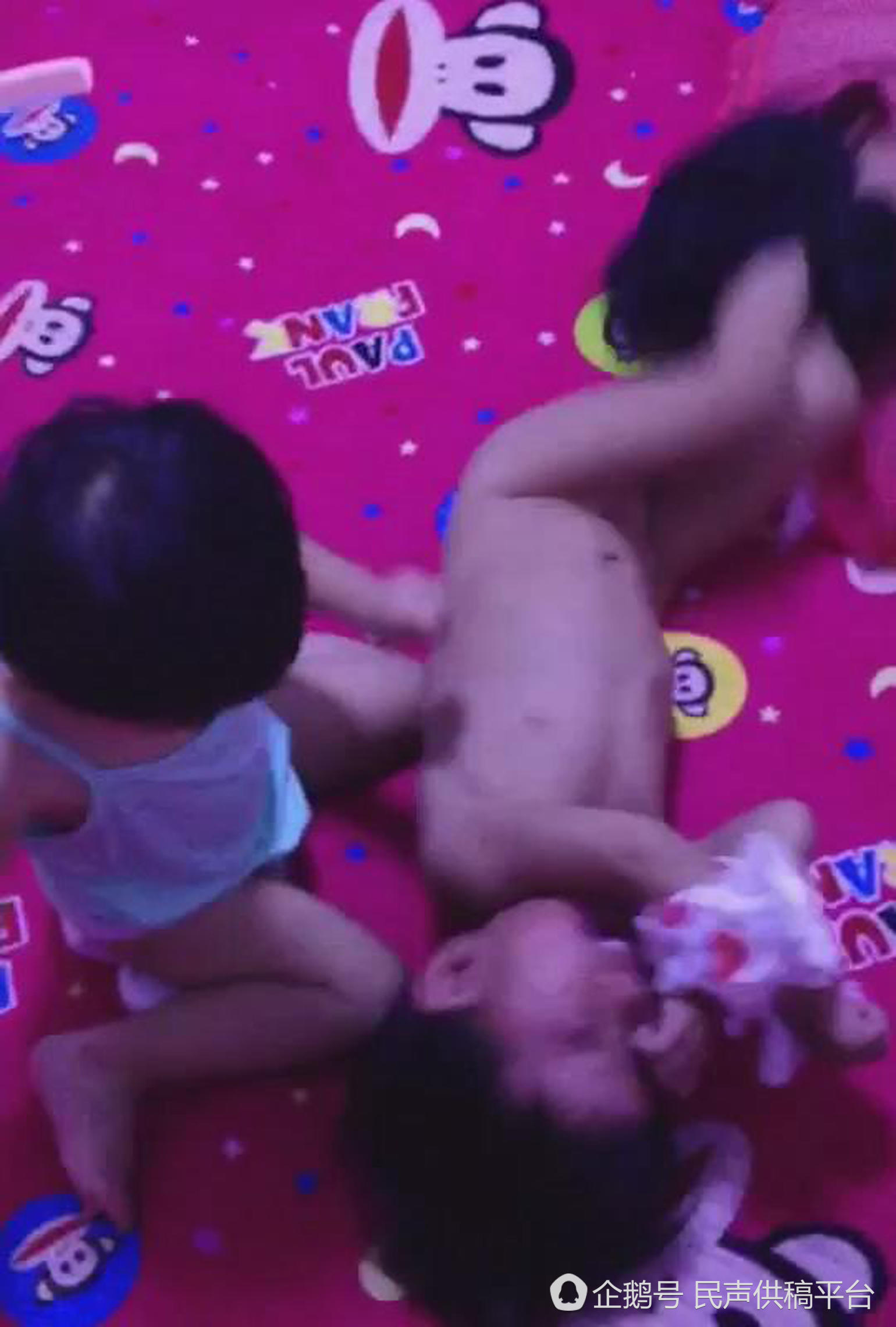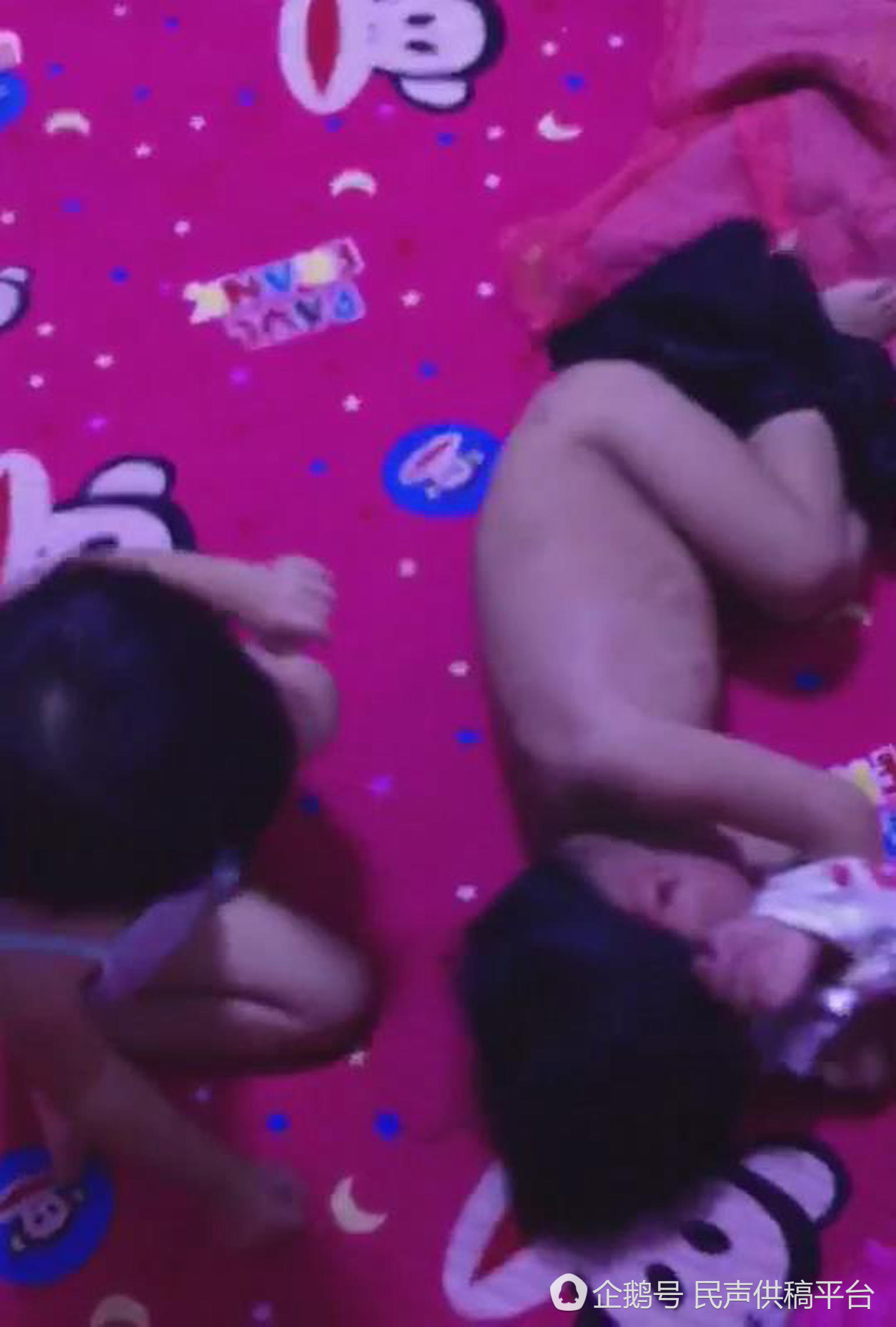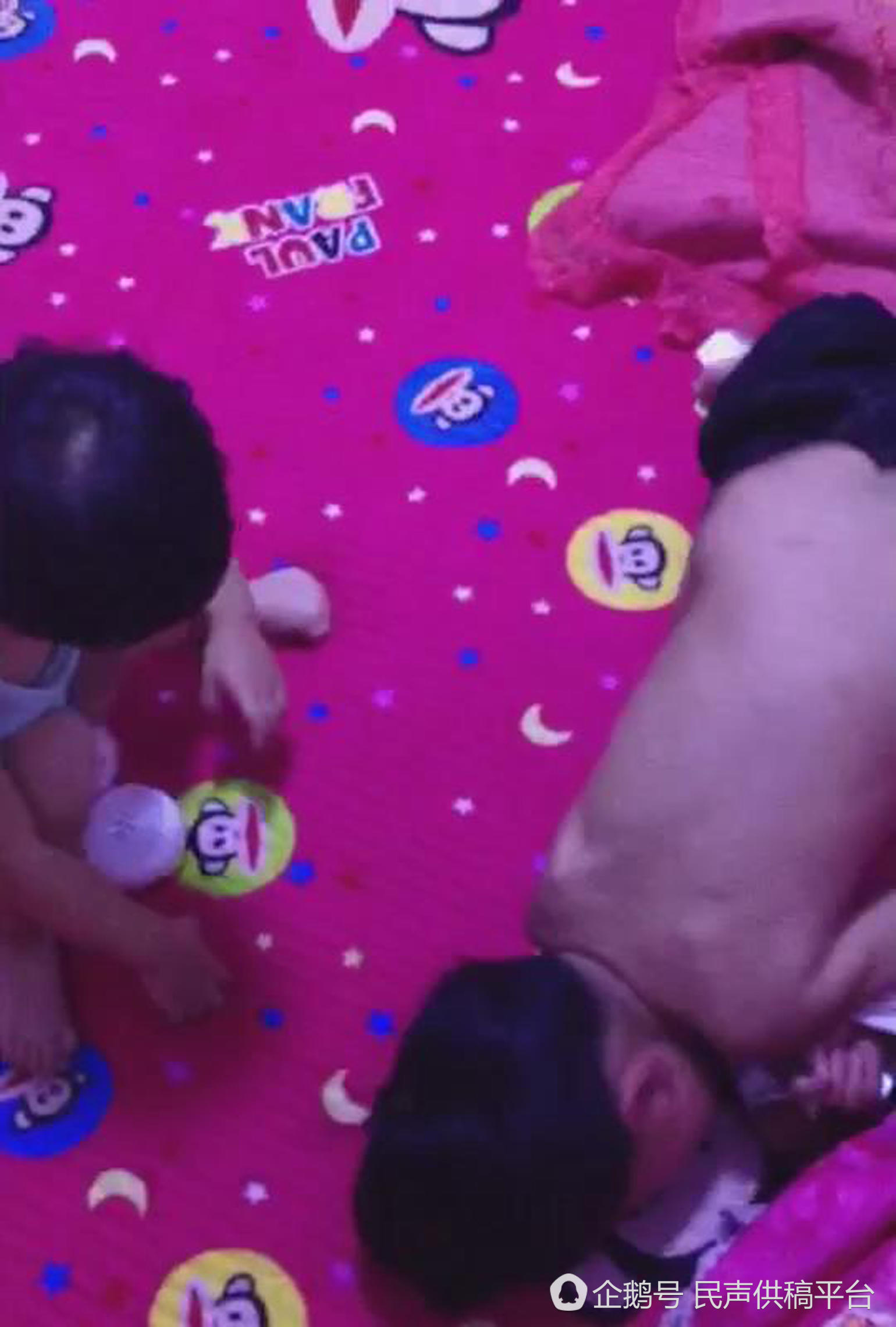 视频中,稍微大点的孩子被捆手脚。(民声供稿平台 发)