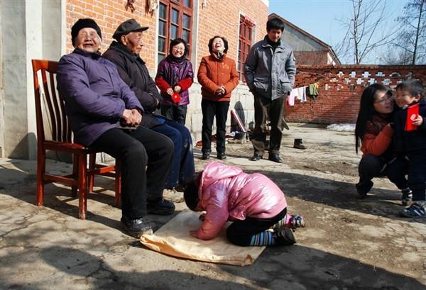 杨秀莲老人有两个儿子,大儿子家俩儿子,老二家俩闺女,平时孩子们都在外面打拼,这不,春节了都回家过年了。大年初一的早上,按照农村的习俗,晚辈都要给长辈行跪拜礼,然后长辈要象征性的发个红包。以前,日子穷,红包里面最多装10块钱,现在经济好了,里面都是100元。看着孙子们一个个都跪下来,老人心里甭说有多开心了,待孩子起身后,老人把手边的四个红包分别给了四个孙子们。