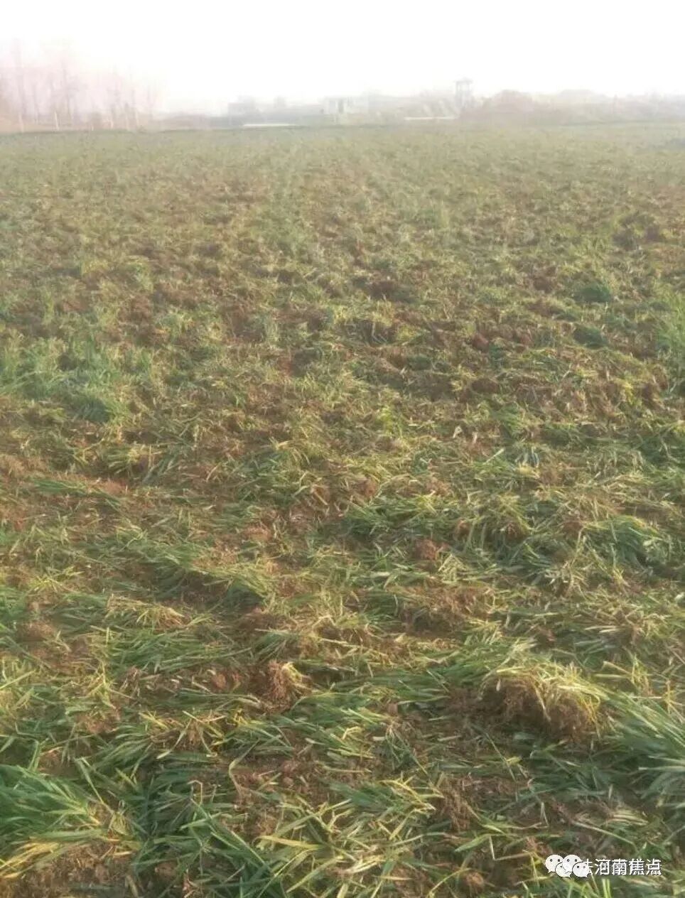 3月8日上午,在反映人带领下,本网来到稍岗镇韦店村。在该村东地,本网看到几十名村民正在栽绿化树,大约50亩麦苗已被旋耙机夷为平地,两台旋耙机停放在新修建的南北路旁。